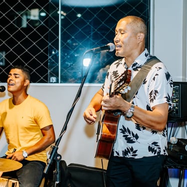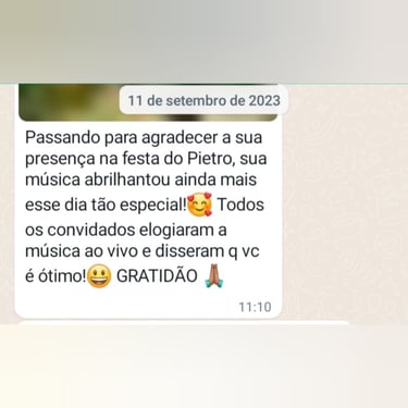 No formato DUO, há uma combinação dinâmica de voz e violão, complementada por um outro músico na percussão. Essa configuração mantém a intimidade, mas adiciona uma vibração mais dançante e animada ao show. A seleção caprichada do repertório permite uma adaptação perfeita para qualquer tipo de evento, proporcionando uma experiência completa e inesquecível.