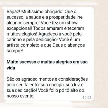 AVALIAÇÕES E AGRADECIMENTOS DE CLIENTES E CONTRATANTES